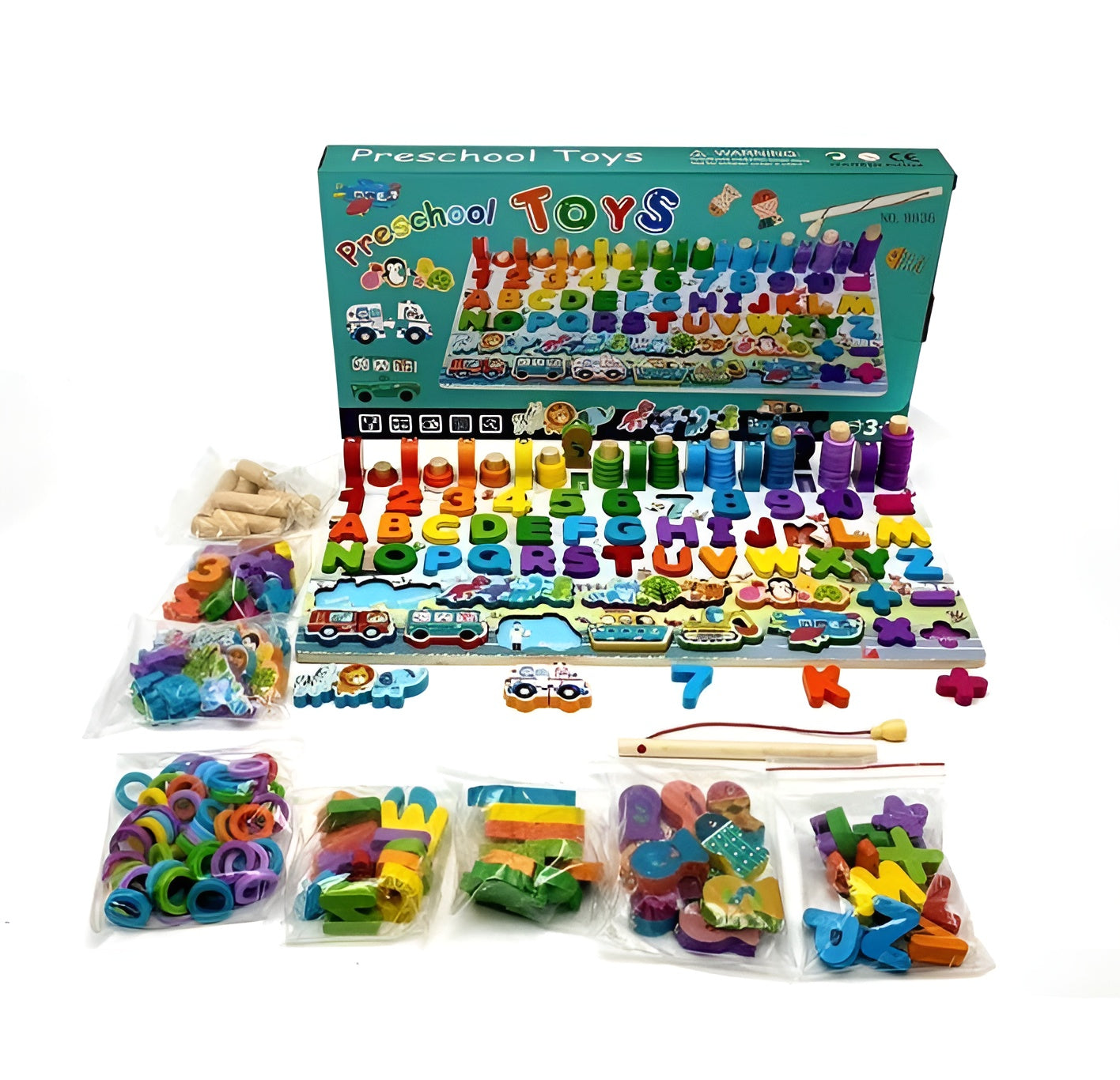 - 6-In-1 Acivity: ABC, Numbers, Shapes, Abacus, Fish Picking Activity, Animals. All these caters to various preschool learning and educational needs.
